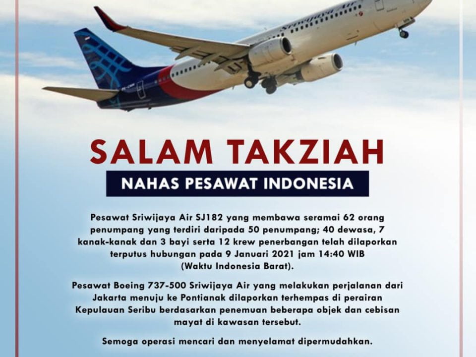 Pesawat Sriwijaya Air SJ182 Indonesia dipercayai terjunam ke laut empat minit setelah berlepas dari ibu kota Jakarta menuju Pontianak, Kalimantan Indonesia. “Lumrah manusia, setiap yang hidup […]